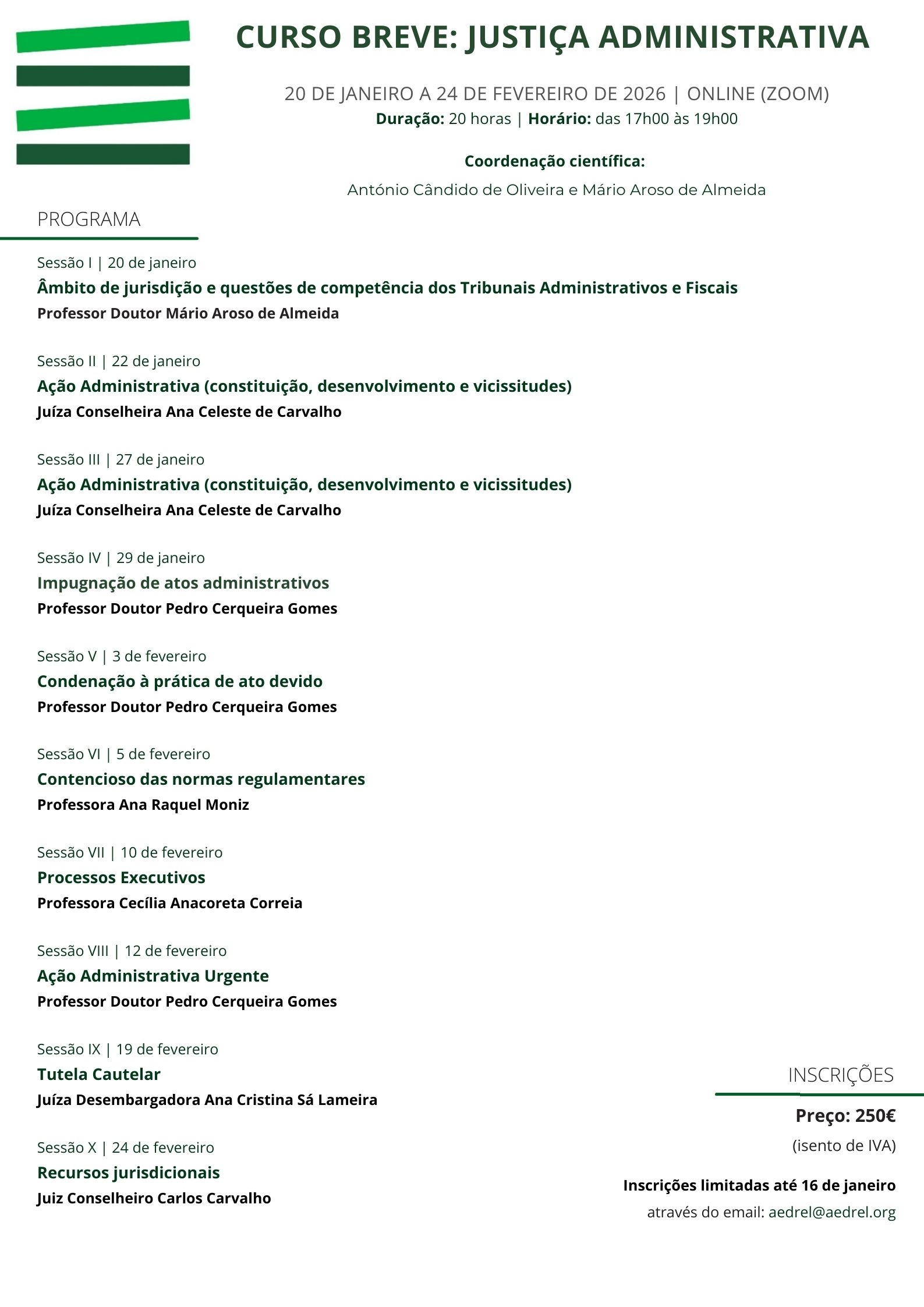 Inscrições limitadas até 16 de janeiro, através do email: aedrel@aedrel.org