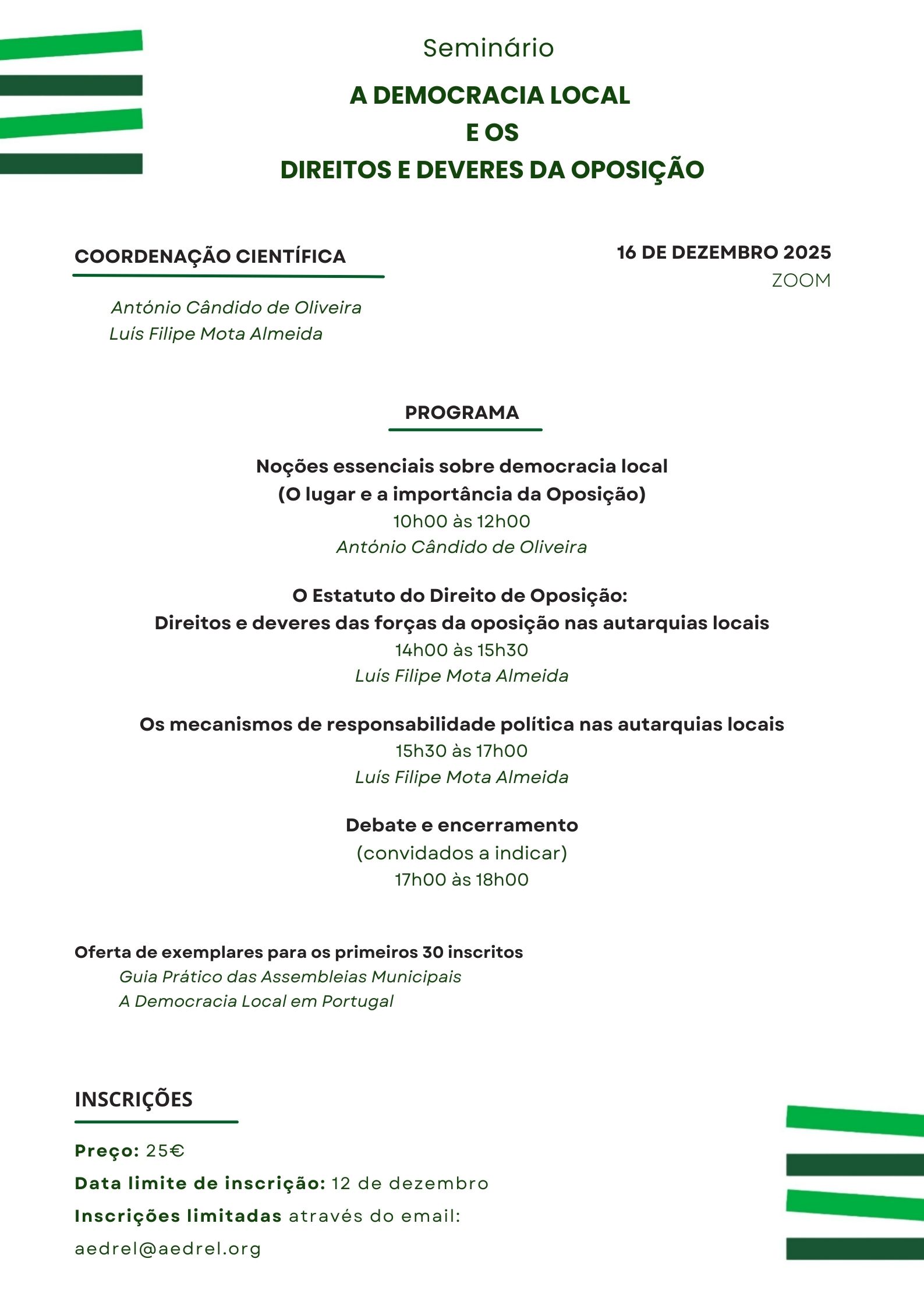 Inscrições limitadas até ao dia 12 de dezembro de 2025, através do e-mail aedrel@aedrel.org